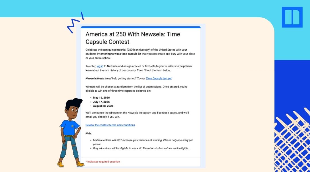 After you’ve assigned an article on Newsela, enter to win a time capsule kit for your classroom or school.